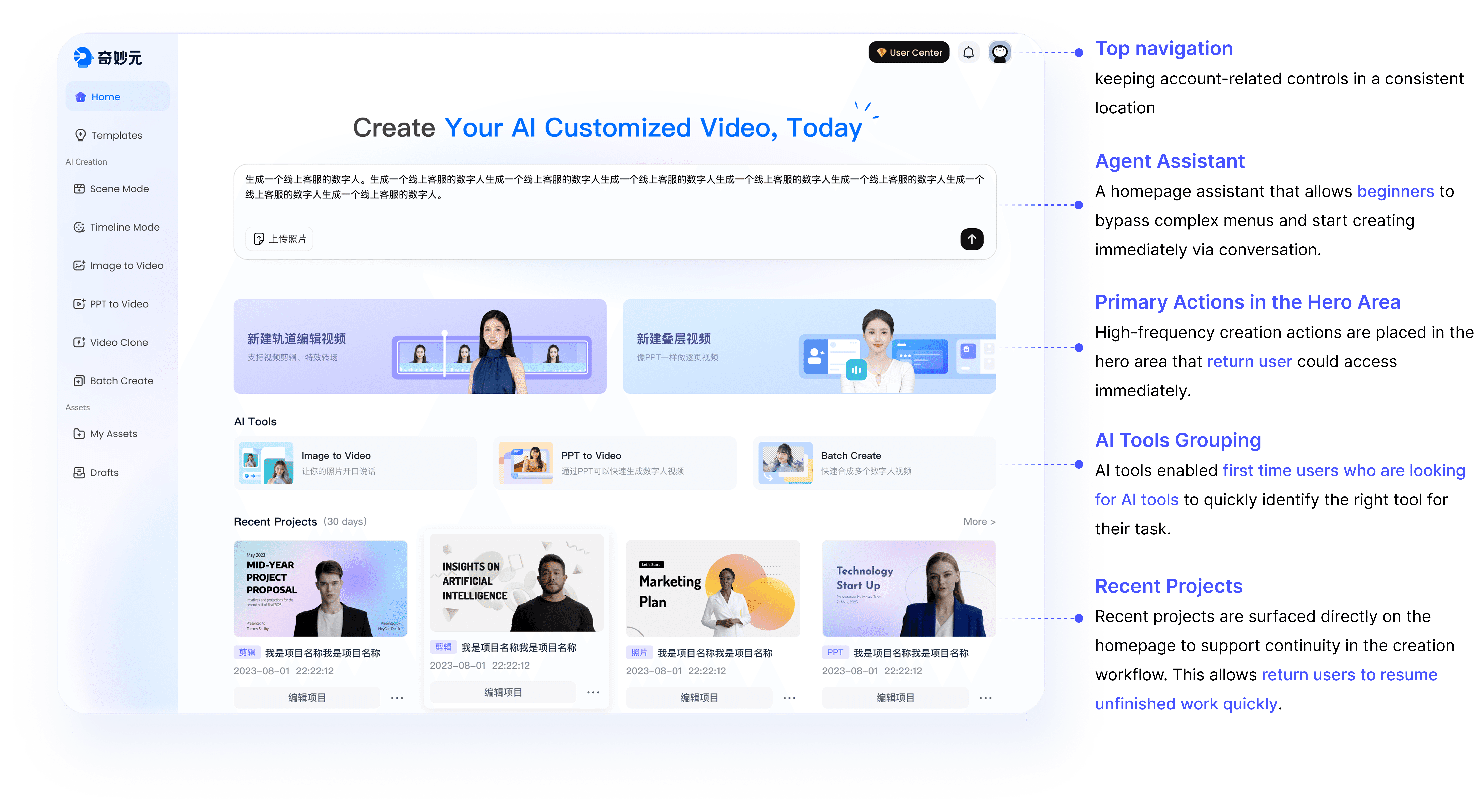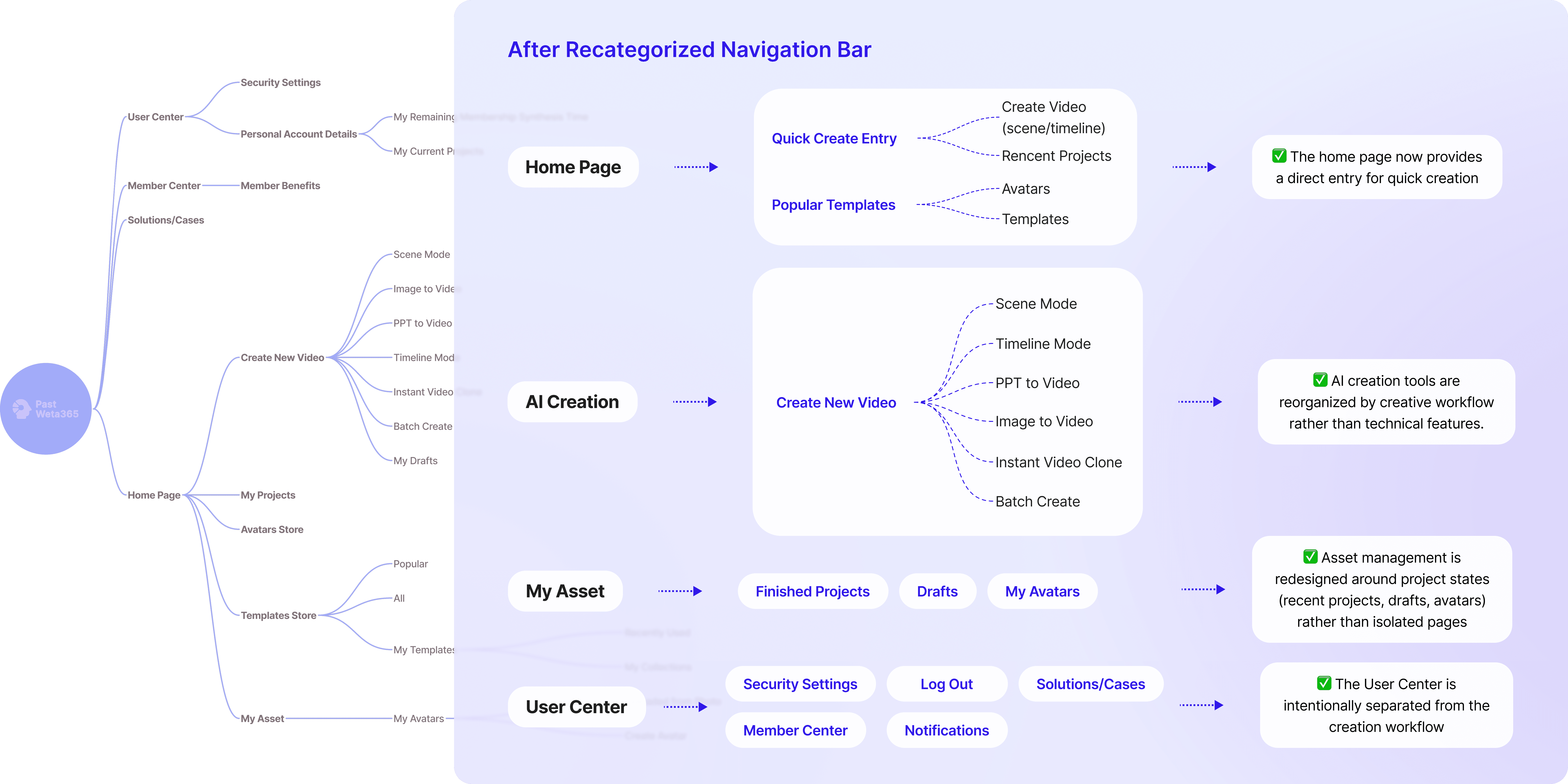 Weta365 is an AI video synthesis platform designed to help users quickly generate digital human videos, voiceovers, and virtual content. As AI technology became more complex, the original version of the software suffered from "feature bloat." The goal was to redesign the product, transitioning it from a complex, tool-oriented platform to a user-friendly creative workspace that makes AI accessible to both casual creators and enterprise clients.